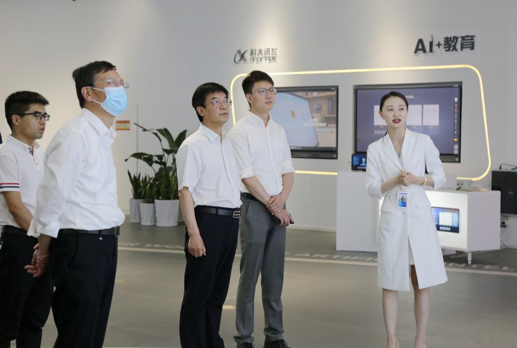 在科大讯飞相关领导的热情接待下,阎东明书记一行参观了科大讯飞人工智能展示厅,近距离体验了办公、教育、城市管理、医疗、居家等领域的AI前沿产品。作为我国最大的智能语音技术提供商,科大讯飞研究积累了智能语音技术领域,在中文语音合成、语音识别、口语评测等多项技术上,拥有领先国际的科技成果。例如:翻译机快速准确的语音转换和翻译、智慧教育促进个性化全方位的教学功能、智能语音和人工智能在智慧养老方面的应用、能说会写的医学机器人为患者提供的就医体验,都极大地改变了传统的工作模式,令人叹为观止。
