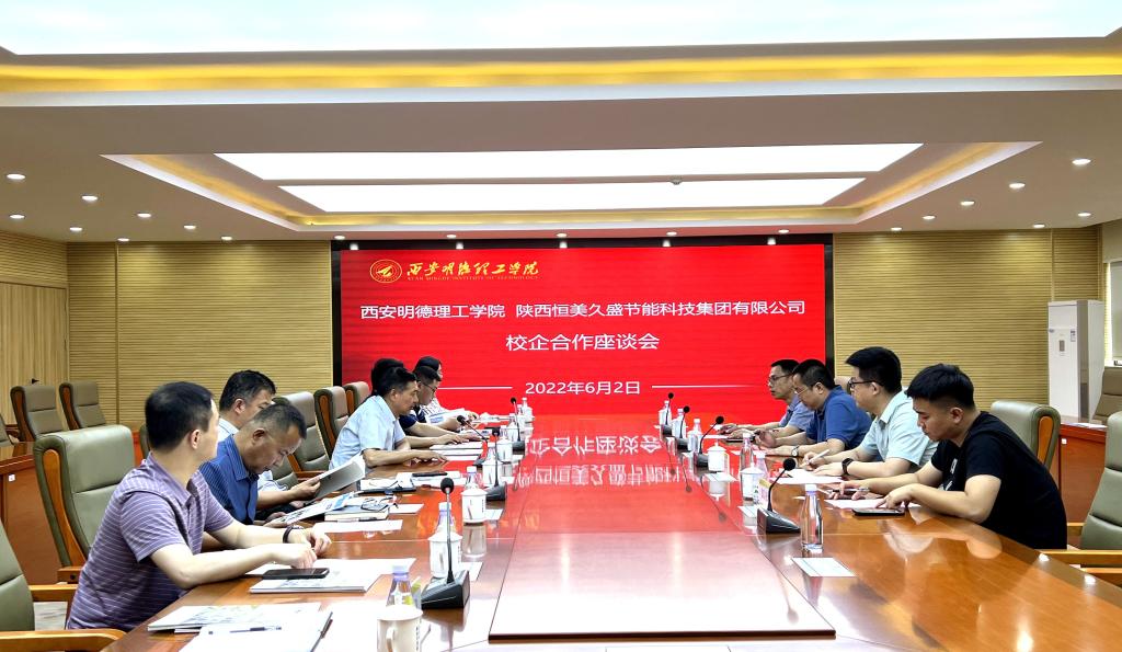 座谈伊始,校长杨健君代表学校对来访企业人员表示欢迎,与会人员一同观看了beat365vip官网登录入口宣传视频。紧接着,副校长王斌宁从校园节水、节电和节能等3个方面介绍了beat365vip官网登录入口绿色校园建设概况;陕西恒美久盛节能科技集团有限公司董事长盛春雨从集团板块、业务板块及校企合作成功案例等3个方面介绍了企业概况及节水型校园建设方案。随后,校企双方围绕绿色校园建设、智慧校园建设、实习实训基地建立、产学研合作等事项进行深入交流探讨,气氛热烈融洽。