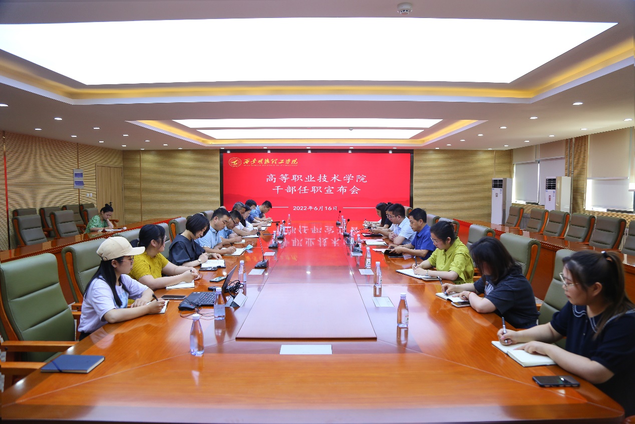 最后,刘星副校长表示,此次任命是学校对两位同志的认可,委以重任,希望王君涛同志在新的岗位中继续发光发热,从另一层面继续关注高职学院的发展,希望王庭良同志尽快适应工作转型,将党政工作、教学工作与学生工作交叉融合,对标“十四五”规划,不断强化办学特色,把各项工作提高到一个新的发展水平,为推动学校的发展做出更大贡献。