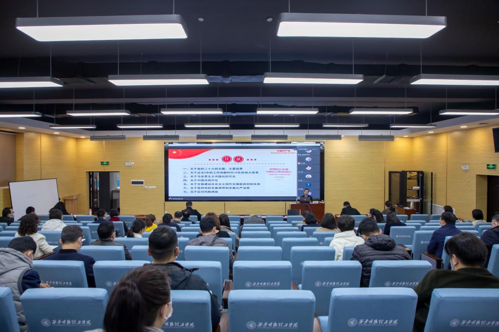 为深入学习宣传贯彻党的二十大精神,落实中省相关部署要求,把全校师生的思想统一到党的二十大精神上来,把力量凝聚到党的二十大确定的各项任务上来。11月11日上午,beat365在建德楼201、202报告厅,以线上线下相结合的方式,举行了党的二十大精神学习宣讲报告会,学校科级以上干部、全体思政课教师、学生工作干部、辅导员和师生党员代表参加了宣讲会。