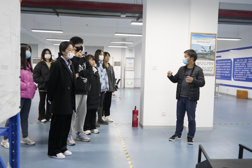 随后,同学们参观了学校无人机实验室。在讲解员的介绍下,参观的同学惊叹不已,不仅加深了明德人对于航天航空专业的热情与厚爱,更加激发了同学们航空报国的热情和信念。大家深受震撼、深感振奋,纷纷表示要努力学习专业知识、提升综合素质能力,更加坚定了作为一名新时代明德人的荣光与使命。