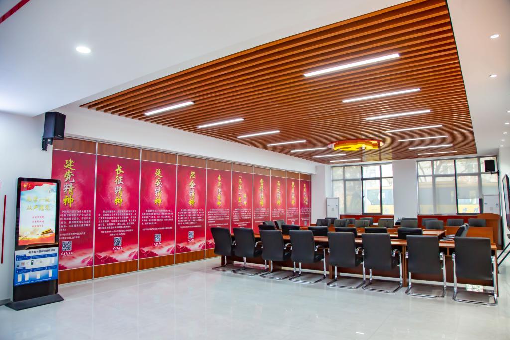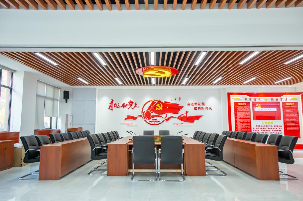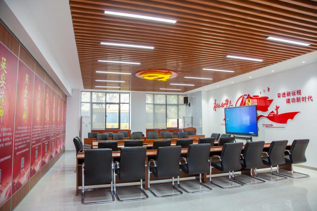 党群服务中心包括了党员活动中心和职工之家,能够用于开展会议、阅读、展示、党建VR体验等,集服务、管理、教育、培训、活动于一体,切实发挥全体师生“自我管理、自我教育、自我服务”功能,全力打造“学习型、服务型、创新型”党组织的主阵地。