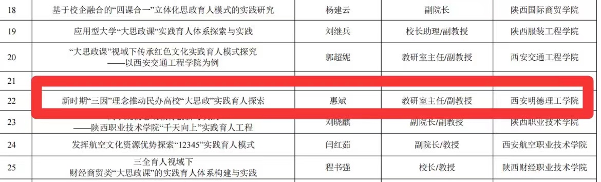 近日,中共陕西省委教育工委、陕西省教育厅公布了2022年陕西省“大思政课”建设试点项目立项结果,学校突破性的获批陕西省“大思政课”建设试点项目1项。