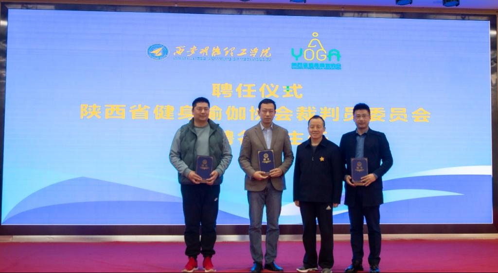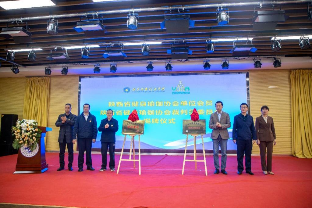陕西省健身瑜伽协会主席金新刚、党支部书记郭飙、副主席孟周焕与beat365vip官网登录入口党委副书记董昊、马克思主义学院与通识教育学院党委书记王君涛、识教育学院副院长郑薇共同为“陕西省健身瑜伽协会单位会员”“陕西省健身瑜伽协会裁判员委员会”揭牌,并将裁判员委员会挂靠beat365vip官网登录入口。