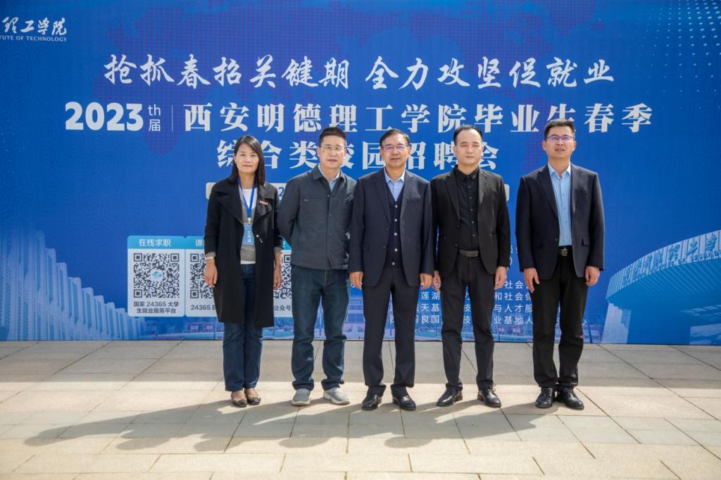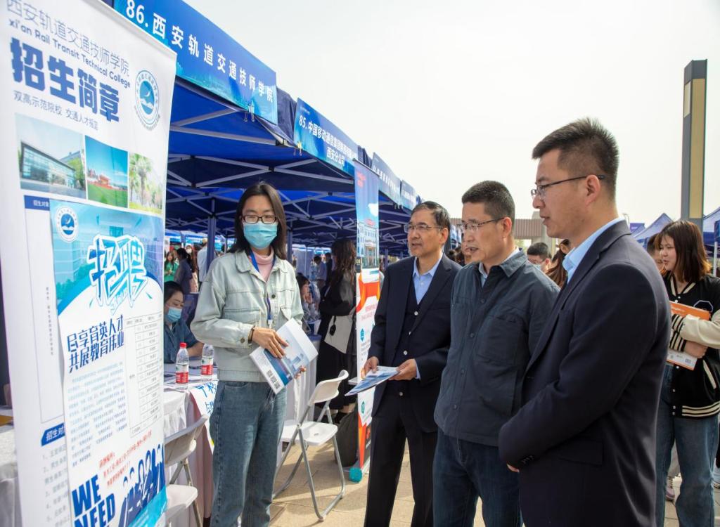 为深入贯彻落实党的二十大精神和党中央、国务院“稳就业、保就业”决策部署,响应教育部“抢抓春招关键期,全力攻坚促就业”号召,拓宽毕业生就业渠道,搭建广大毕业生与优质用人单位的双向选择平台,促进毕业生更充分更高质量就业,4月12日上午beat365成功举办了由陕西省教育厅、中国西安人才市场管理委员会办公室(陕西省人才交流服务中心)指导、beat365主办、西安市长安区人力资源和社会保障局、西安市莲湖区人力资源和社会保障局、西安航天基地科技创新与人才中心、西安阎良国家高新技术产业基地人才服务中心承办的2023届毕业生春季校园综合招聘会。陕西省教育厅二级调研员白炀、高校毕业生就业服务中心陈靖莅临beat365考察指导,校长杨健君、副校长刘星对莅临领导表示热烈欢迎并到会与企业招聘代表进行交谈,了解企业基本信息、招聘岗位,学生应聘等情况。