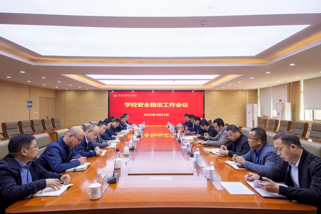 会上,党委书记阎东明对学校当前安全稳定工作面临的形势进行全面分析,对近期安全稳定工作进行了全面部署,明确了重点任务。他指出,学校各级各单位要认真贯彻委厅会议精神和部署要求,深刻把握学校安全稳定形势,全力为学校高质量转型发展保驾护航。要积极推进“平安校园”建设工作,全面推进学校安全稳定制度机制建设,不断加强学校“三防”体系建设,大力开展内容丰富的建设活动,促进创建工作不断取得新成效。要坚持系统思维、统筹落实,常态抓好意识形态领域、招生就业工作、消防安全管理、疫病防治防控、后勤服务保障、基建工程管理、校园综合治理、网络信息安全、社团活动管理等工作。要认真抓好学生教育管理,落实好校内校外各项管理制度,关注和做好各类群体工作,广泛开展群众性校园文化活动,努力营造学生健康成长、努力成才的良好环境。