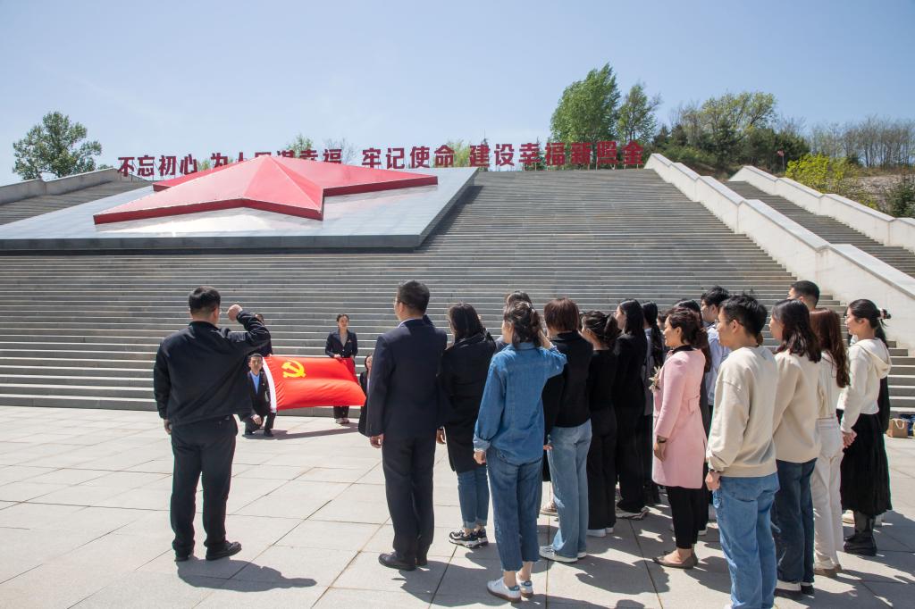 揭牌仪式后,全体人员怀着崇高的敬意步入照金纪念馆,参观革命物件,观看革命故事,学习革命精神,接受革命精神洗礼。随后,在中心广场,由高超同志领誓,全体党员重温入党誓词。阳光下,一句句铿锵有力、回声嘹亮的入党誓词再一次坚定了每一位共产党员入党时的初心使命,强化了作为一名共产党员的责任感和使命感。