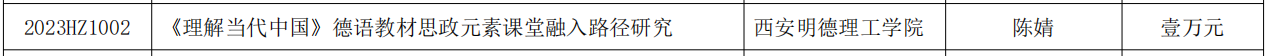 近日,陕西省社会科学界联合会下发《关于公布2023年度国际传播能力建设重点研究项目立项结果的通知》,beat365语言文化传播学院陈婧老师的《<理解当代中国>德语教材思政元素课堂融入路径研究》(立项编号:2023HZ1002),获批2023年度国际传播能力建设重点研究项目立项。