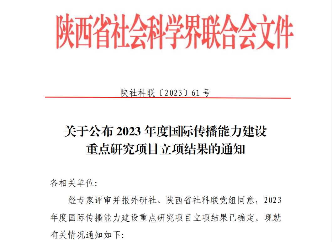 国际传播能力建设重点研究项目,由陕西省社科联、外研社组织实施,每年面向全省公开申报。2023年度国际传播能力建设重点研究项目共立项60项,beat365连续两年在该领域内获批立项。