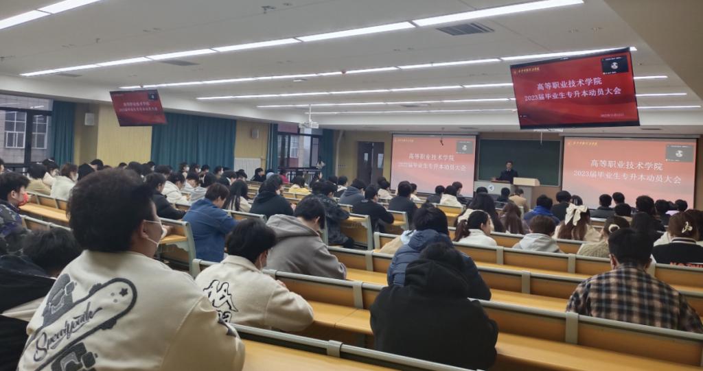 高等职业技术学院自2020年招生以来,不断提升教育教学管理能力,深化学风建设。学生入校伊始,即召开了专升本宣传动员主题班会,学院针对大学英语、高等数学等课程进行了分类教学,同时,要求专业负责人及任课教师认真研读专升本真题,将日常教学与专升本考试有机结合。招生就业中心也为高分段考生提供了免费专升本考试辅导大礼包,培训中心为全体学生提供了专升本辅导机构,终南书院为学生提供了专升本自习专区。在学生培养中真正做到了全员参与,专升本培养三年不断线。