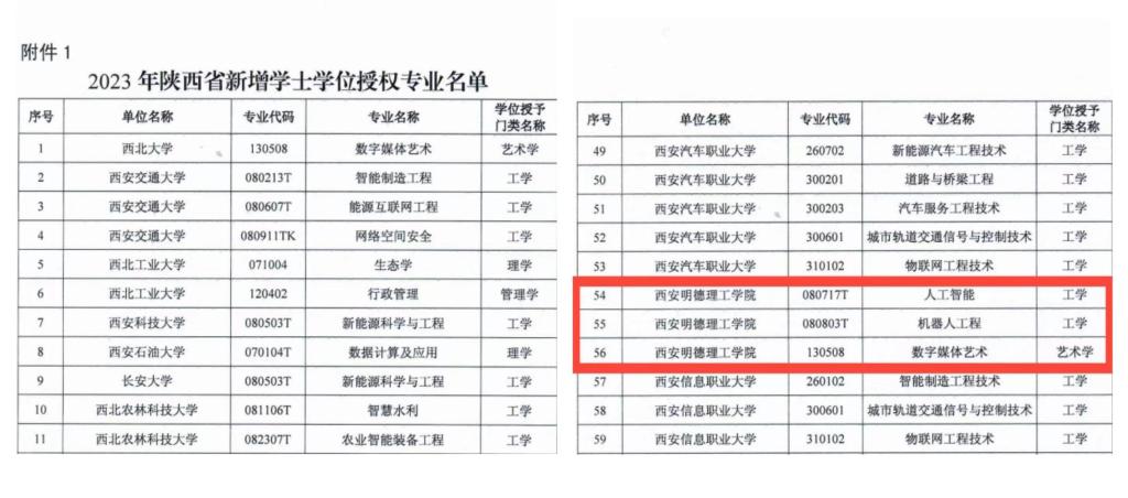 近日,陕西省学位委员会印发了《关于2023年新增及调整学士学位授权专业的批复》,beat365人工智能、机器人工程、数字媒体艺术等三个专业顺利通过评审,增列为学士学位授权专业。