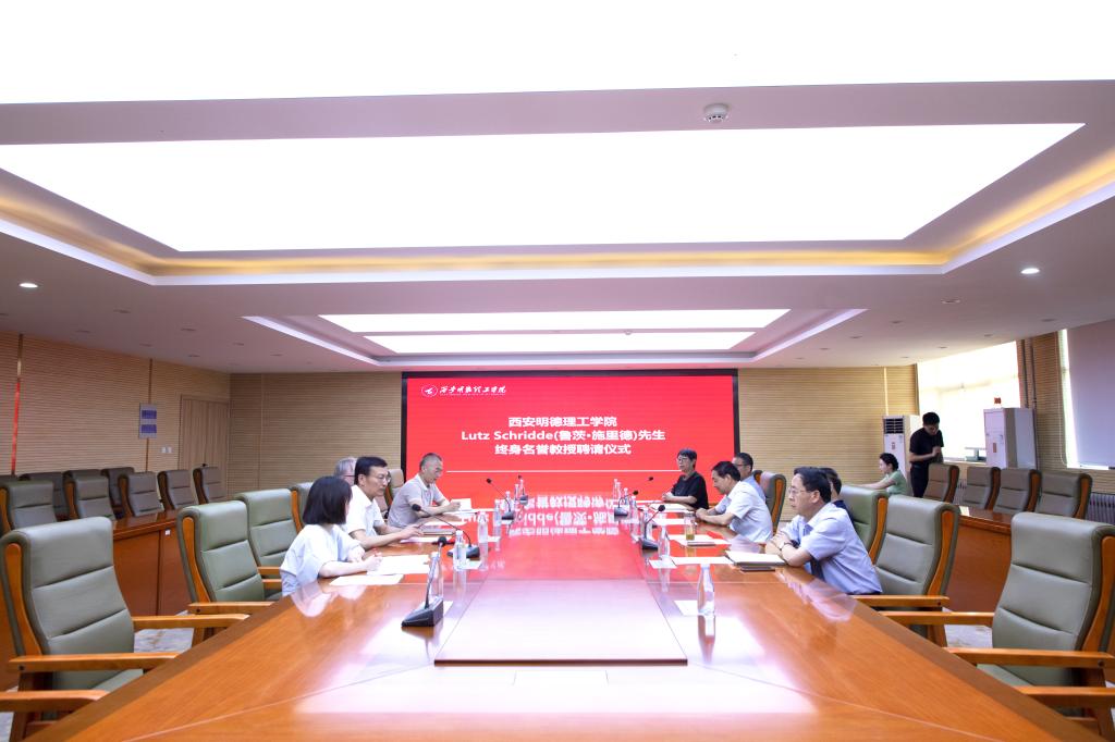 杨健君校长对Lutz Schridde(鲁茨•施里德)先生在beat365任教以来做出的诸多贡献表示感激;对先生即将离开beat365表示不舍;对先生在返回德国故乡前被聘请为beat365终身名誉教授表示欣慰。他希望先生回国后能够继续关注明德,关注西安,关注中国。