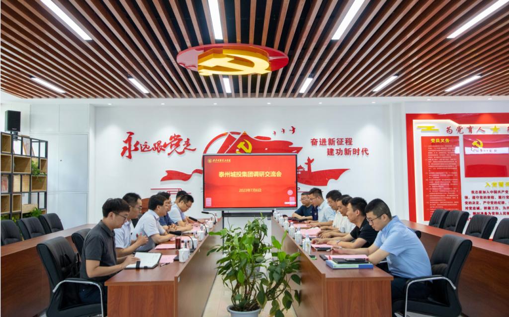 7月6日上午,泰州市城市建设投资集团党委副书记王小飞一行六人来访beat365vip官网登录入口。校长杨健君、党委书记阎东明、副校长刘星、学校办公室、党委组织宣传部、人力资源处、财务处等单位负责人与来宾在行政楼108党群活动中心座谈。