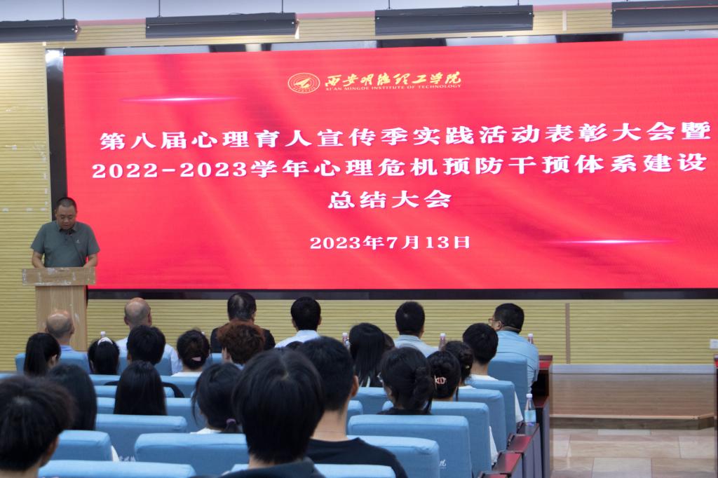 学校第八届心理育人宣传季实践活动表彰大会暨2022-2023学年心理危机预防干预体系建设总结大会于7月13日在建德楼202会议室举行。学校副校长王斌宁,学校党委副书记董昊,相关单位负责人,各二级学院党委(党总支)书记、党委副书记、心理专干、辅导员,心理中心专兼职教师,学生代表参加了本次会议。会议由党委学生工作部王飞主持。