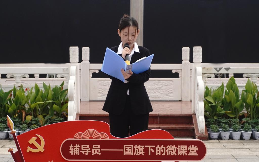 语言文化传播学院辅导员孙子怡老师以“青春恰似火,扬帆正当时”为主题做“开学第一课”国旗下微课堂分享。她代表学校老师对2023 级新生表达了诚挚的欢迎,勉励新生要尽快转换身份,适应全新的大学生活,树立崇高梦想,以高洁的学品涵养高尚的人品,以良好的学风锻造做人的风格。鼓励参训同学在如火的青春里,用团结魂、友爱魂、坚韧魂的青春姿态在校园中大放异彩。