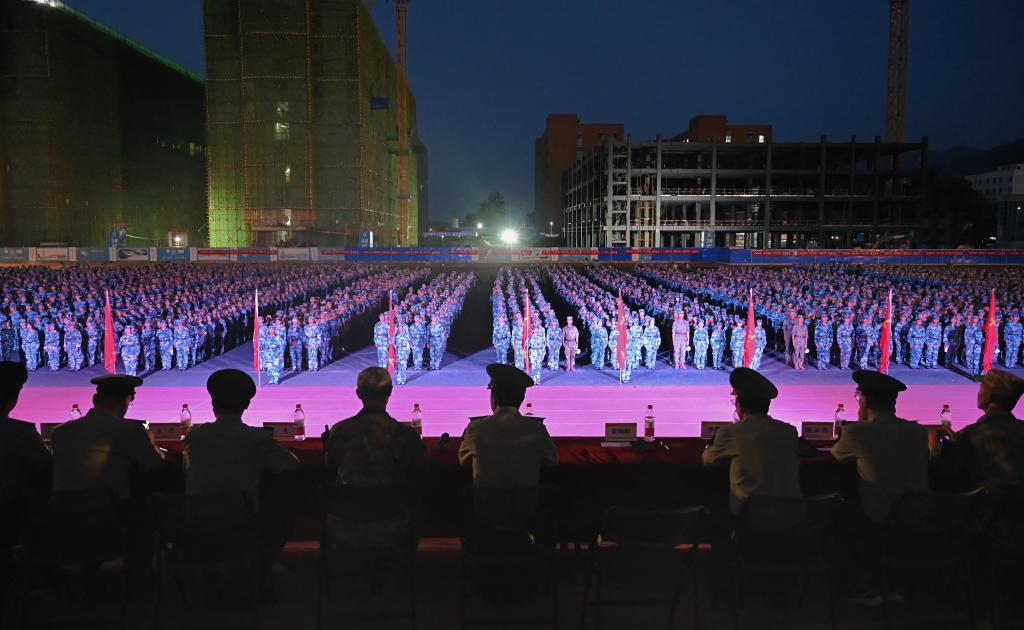 9月3日晚,2023级新生军训团第二次队列会操在操场正式举行。军训团全体军政干部及2023级参训新生参加本次会操。校党委副书记、军训团政委董昊及其它军训团军政干部担任评委。
