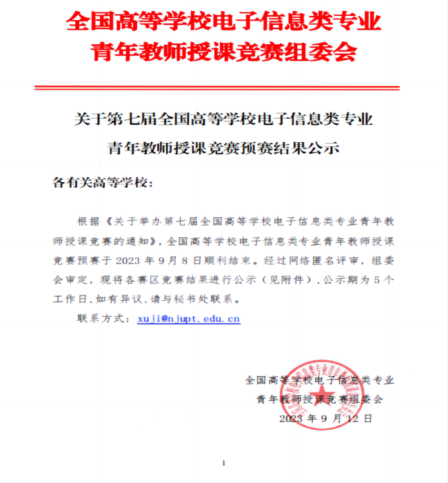 2023年9月12日,第七届全国高等学校电子信息类专业青年教师授课竞赛预赛结果公示,beat365信息工程学院四名教师获得华西赛区三等奖。