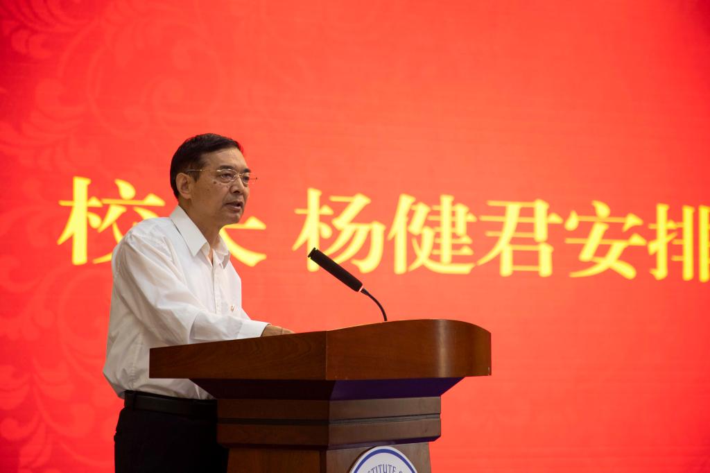 校长杨健君作了题为“踔厉奋发,务实笃行,推动年度工作目标任务圆满完成”的讲话,充分肯定了学校暑期各项工作,分析了当前面临的形势任务和存在的问题不足,明确了秋季学期学校工作思路,并对重点工作作了部署。杨健君指出,新学期工作,要坚持教学评建工作一条主线,深化教育教学改革、体制机制改革“两项改革”,推进强师工程、凝聚力工程、和谐校园建设工程“三大工程”,开好人才工作会、思政工作会、教学工作会、实践教学工作会、学风建设工作会“五个会议”。他强调,要突出做好五项重点工作,一是要扎实做好党建工作,切实提供坚强保证;二是要围绕教学评建主线,统筹推进达标建设;三是要加快治理体系改革,不断激发办学活力;四是要深化人事制度改革,推进实施强师工程;五是要常态排查整治风险隐患,全力保障校园安全稳定。他强调,广大教职员工要以干事创业的精神谋事干事,要以攻坚克难的决心担当作为,要以严谨务实的作风实干笃行,始终以永不懈怠的精神状态和一往无前的奋斗姿态,圆满完成年度工作任务,顺利实现评建工作目标,为建设特色鲜明、国内一流、具有一定国际知名度的应用型大学而持续奋斗!