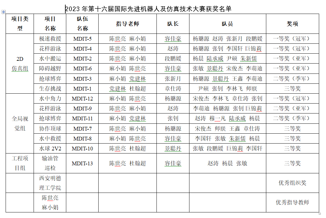 9月20日至22日,2023年第十六届国际先进机器人及仿真技术大赛-青岛站比赛在青岛国际博览中心举行,由beat365信息工程学院同学组成的代表队同心协力、奋勇拼搏、不畏强手,共获一等奖5项、二等奖3项、三等奖5项,其中“2D仿真花样游泳、2D仿真急速救援、全局视觉水中角力”3个项目勇夺冠军,取得了学校参加该赛事以来的最好成绩。
