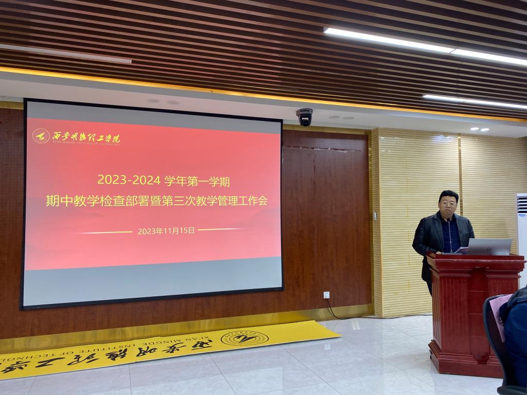 为规范教学过程管理,强化教学质量监控,加强教学过程监督以及后半学期教学工作的进一步顺利开展,11月15日下午,学校组织召开了2023-2024学年第一学期期中教学检查部署暨第三次教学管理工作会议,副校长朱延波、各二级学院主管教学副院长、办公室主任、教务人员、质量管理与评估办公室、教师发展中心、党委学生工作部负责人和教务处相关人员等一百余人参加了会议。会议由教务处副处长文亮主持。