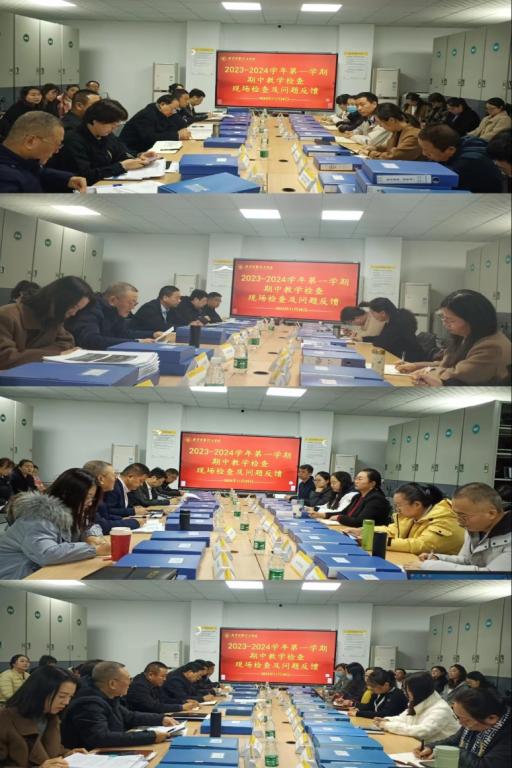 为全面了解和掌握各教学单位本学期的教学运行情况,加强教学质量监控过程管理,进一步提升beat365人才培养质量,根据学校《关于开展2023-2024学年第一学期期中教学检查工作的通知》(校教字〔2023〕46 号)、《关于开展 2023-2024 学年第一学期期中教学检查-学校检查工作安排的通知》(校教字〔2023〕53 号)文件要求,学校检查组对各教学单位2023-2024学年第一学期的前半学期教学情况进行了全方位的检查。参加检查工作的还有各二级学院、教学相关处室的领导及全体专业负责人。