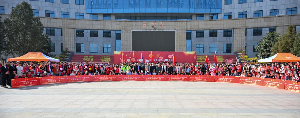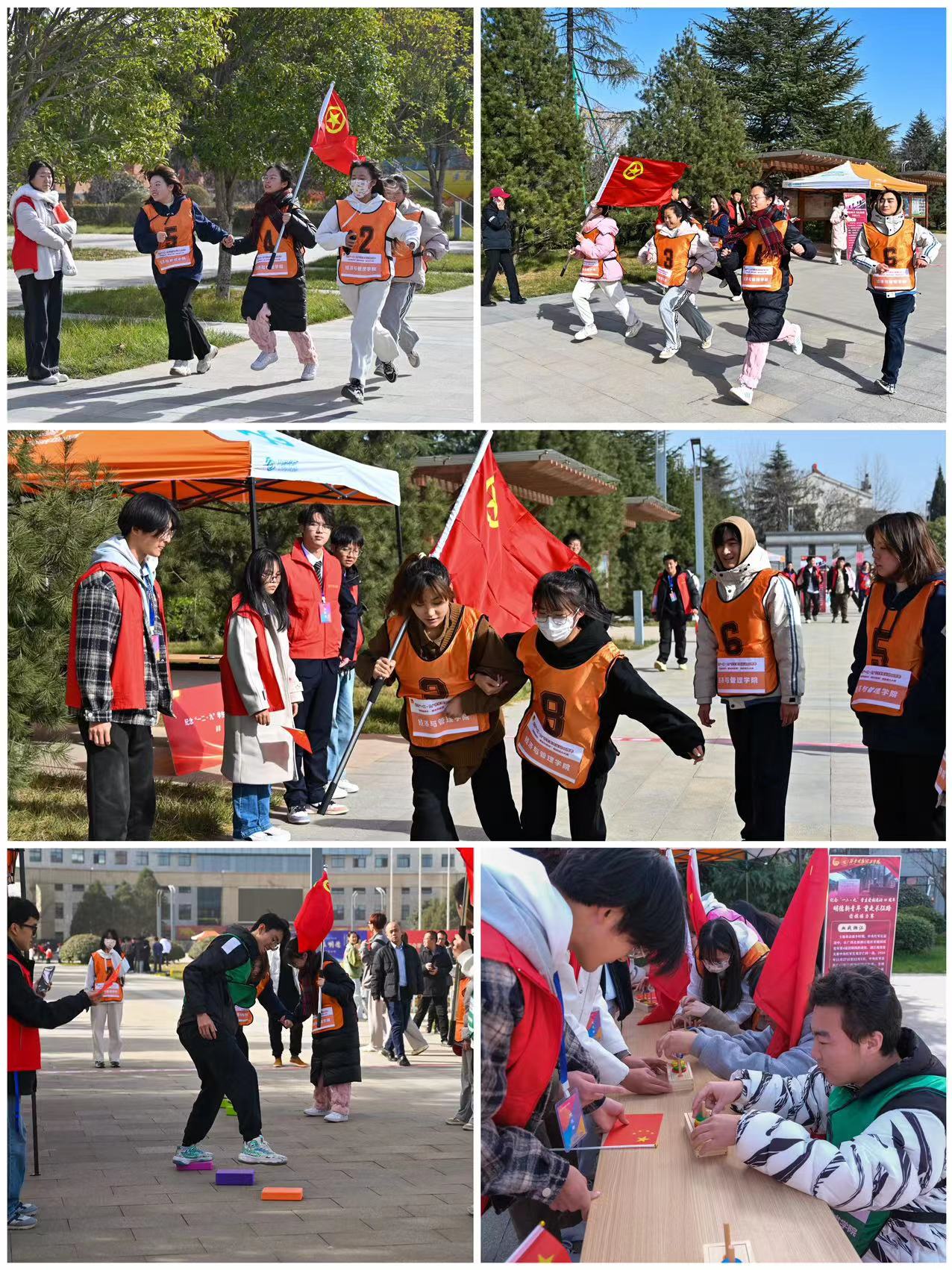 本次“明德新青年·重走长征路”团旗接力比赛面向全校公开选拔66名明德新青年,组建了6支队伍,赛道设置了瑞金站、血战湘江站、遵义会议站、四渡赤水站、巧渡金沙江站、强渡大渡河站、飞夺泸定桥站、爬雪山站、懋功会师站、过草地站、激战腊子口站、延安大会师站等12个站点。各站点创新设计了党团知识竞赛、宪法知识竞赛、教学评建知识竞赛等主题竞赛,同时设计潜伏前进、守护炸药包、百万雄师过大江、战鼓擂动、默契行军等学生喜闻乐见的主题游戏。