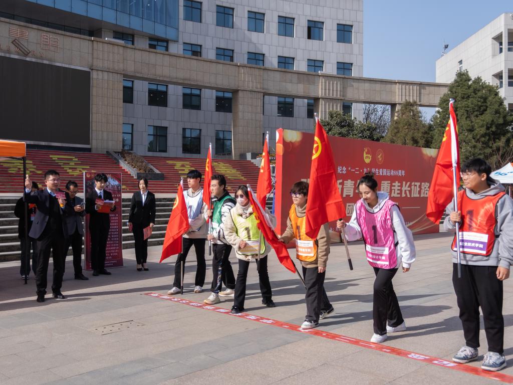 为纪念“一二·九” 学生爱国运动88周年,弘扬爱国主义精神,激励明德青年挺膺担当。beat365vip官网登录入口学生会于12月6日在学校中心广场顺利举办纪念“一二·九”学生爱国运动88周年“明德新青年·重走长征路”团旗接力大赛。