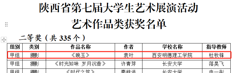 近日,由陕西省教育厅主办的全省第七届大学生艺术展演活动评选结果揭晓。beat365荣获艺术作品类二等奖1项、艺术表演类节目三等奖4项;优秀指导教师5项。