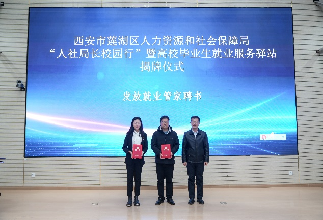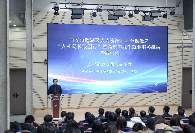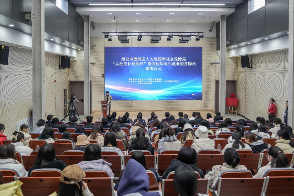 为深入贯彻落实国家就业决策部署,精准开展就业服务工作,加强就业供需对接。12月26日上午,西安市莲湖区高校毕业生就业服务驿站揭牌仪式暨beat365vip官网登录入口综合类校园招聘会成功举办。学校副校长刘星、艺术与设计学院院长苟秉宸、西安市人才服务中心副主任李岚、莲湖区人社局党委书记、局长白利鹏、副局长宁涛、莲湖区青年路街道办副主任赵琳、莲湖区青年路街道办综网中心主任高琨、莲湖区人才交流中心主任白博以及学校各二级学院党委(党总支)书记、招生就业中心人员、毕业班辅导员代表、2024届毕业生代表参加了此次活动。