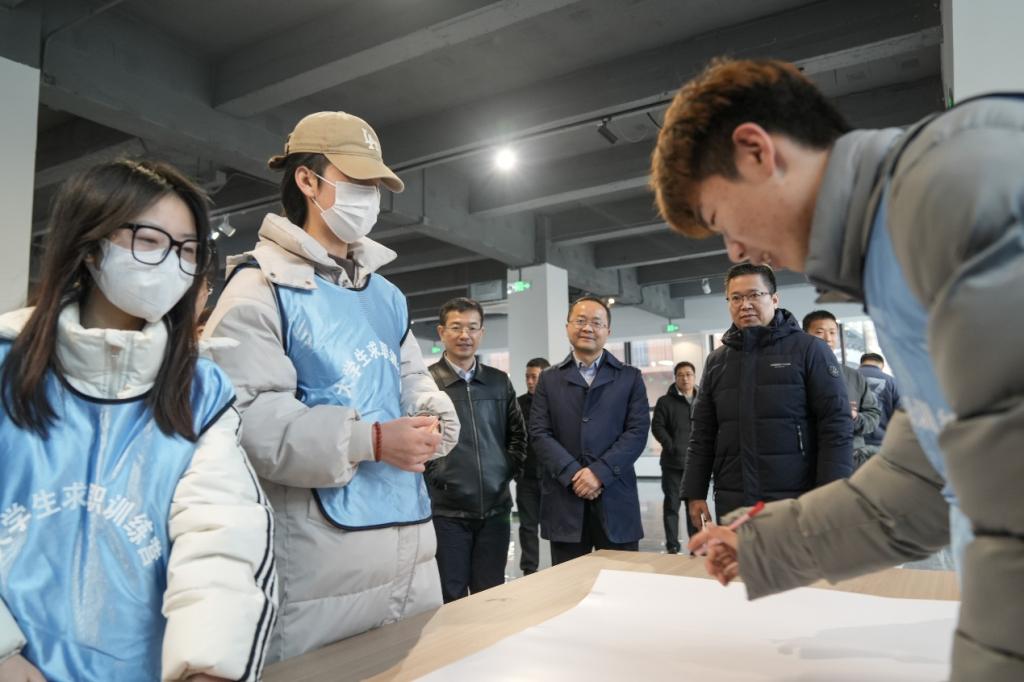 随后,学校副校长刘星、艺术与设计学院院长苟秉宸、莲湖区人社局及青年路街道办领导在学校招生就业中心人员的陪同下深入毕业生就业能力提升训练营、招聘会现场了解就业能力提升活动及招聘会现场情况。副校长刘星表示学校将积极利用就业服务驿站这一平台,为毕业生就业创业提供全链条帮扶,实现政府、企业、学校同向发力、同频共振,为毕业生高质量充分就业保驾护航。