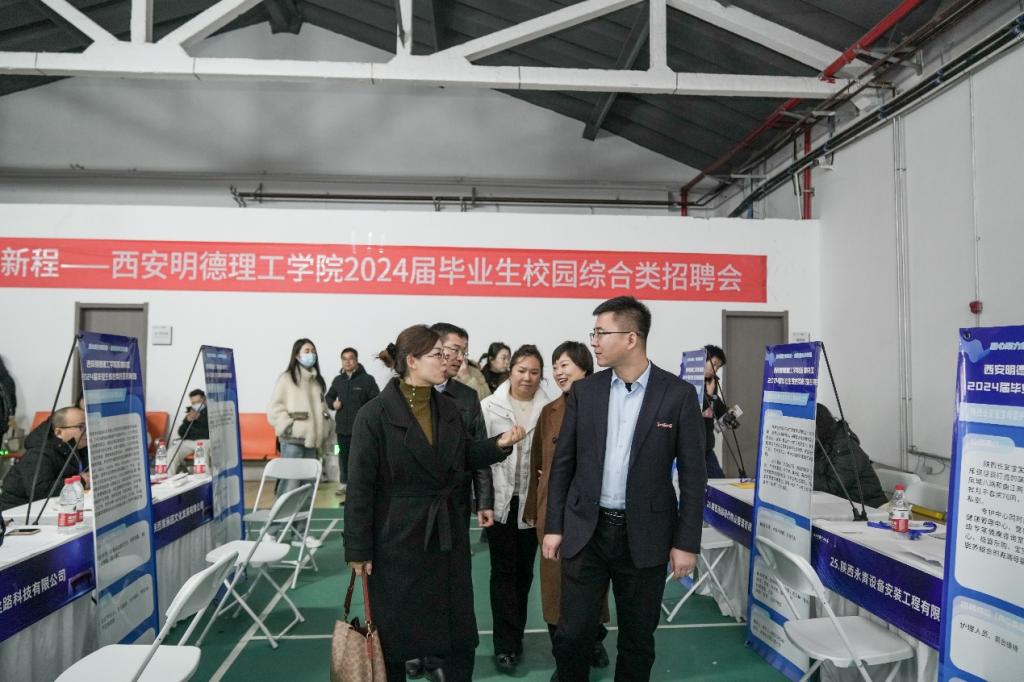 本次招聘会由陕西省教育厅、西安市人社局指导,学校和西安市莲湖区人社局、莲湖区青年路街道办主办,莲湖区人才交流服务中心和西安航天基地科技创新与人才服务中心承办。本次招聘会岗位多、地域广、行业全,来自省内外的104家知名企业齐聚一堂,涉及教育业、制造业、文旅业、信息技术服务、经济类、房地产业等多个领域,累计提供2161个就业岗位精准对接beat36539个本、专科专业,累计收集简历600余份,30余名毕业生初步达成就业意向。期间采用直播带岗的形式同步开展了网络招聘会,共计32家企业参会,提供了560个岗位。