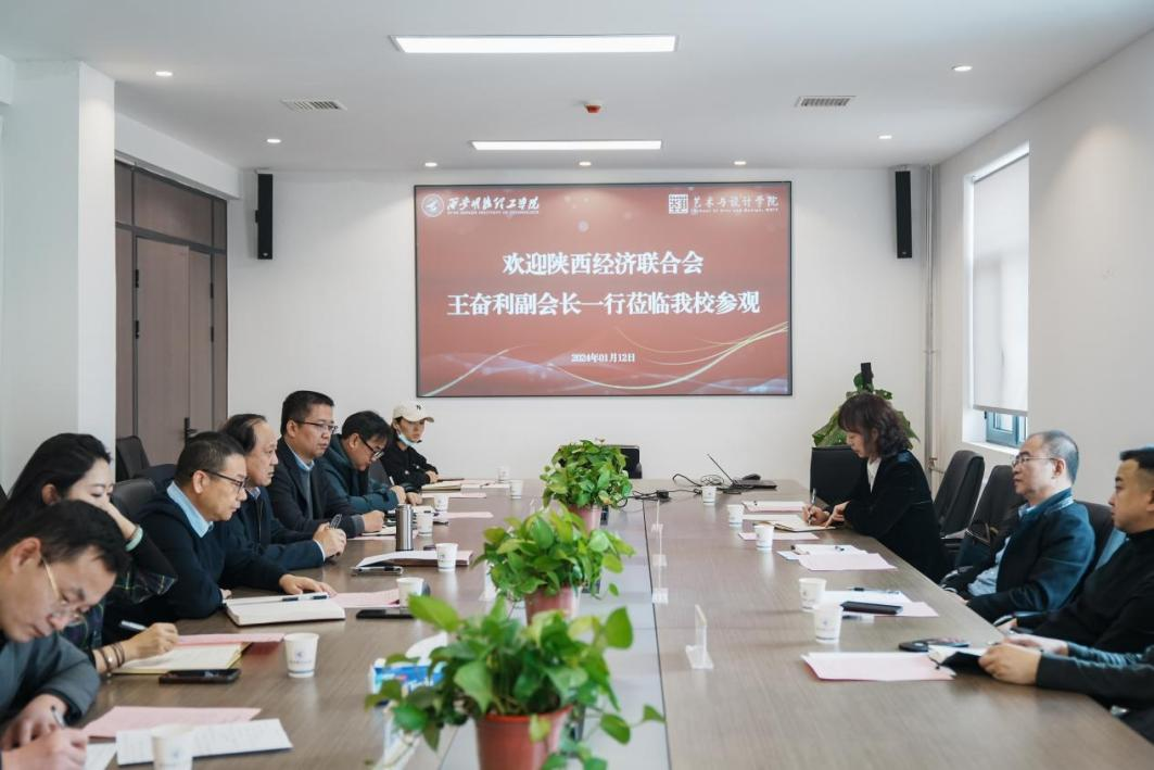 王志刚校长代表学校对王奋利副会长一行来校调研表示欢迎和感谢,介绍了beat365的基本情况和办学特色。王奋利副会长介绍了陕西经济联合会的基本情况和相关行业情况。王奋利副会长认为,beat365vip官网登录入口是一所好学校,艺术与设计学科专业很有特色,和经济联合会分管的行业企业已有深入的合作基础,在工艺美术领域实力雄厚,拥有中国工艺美术大师的教学实践资源,人才培养卓有成效。双方合作意愿强烈,可以开展行业调研、专家智库、校企合作、工艺美术大师推评、职业技能培训与大赛等合作。