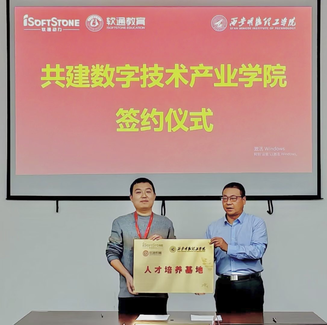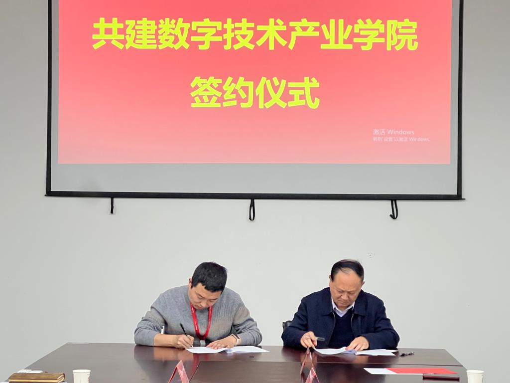 最后,在现场与会人员的见证下,王志刚校长与郝少杰总经理代表校企双方,签订了校企共建数字技术产业学院战略合作协议,朱延波副校长代表学校授牌并接牌。
