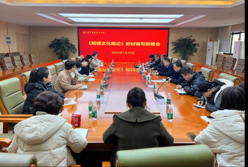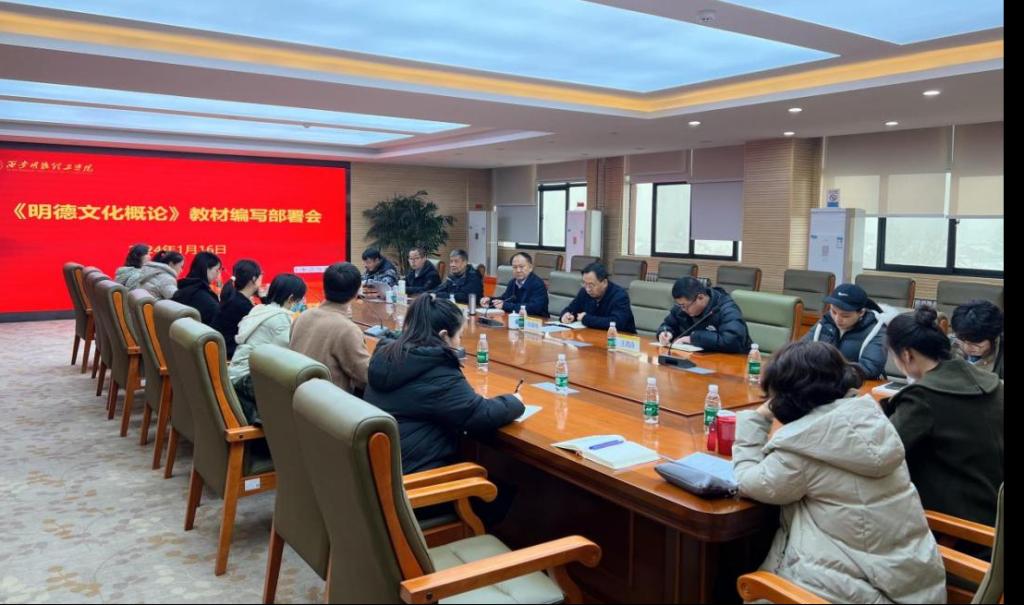 为了进一步彰显beat365明德文化育人办学特色,厚植明德文化底蕴,落实立德树人根本任务,1月16日下午,《明德文化概论》教材编写部署会在明志楼南518会议室召开。王志刚校长、白秦川副校长、孔润年教授和全体教材编写组教师参加会议。会议由马克思主义学院副院长惠斌主持。
