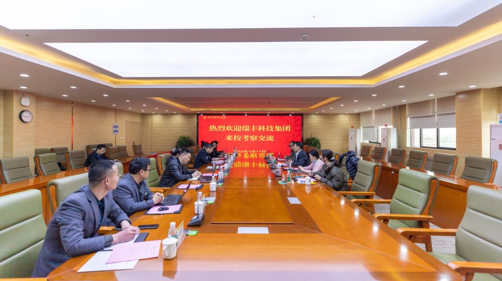 2024年3月12日下午,瑞丰科技集团副总裁杨晓军、瑞丰科技集团总裁办主任伦晓凤、陕西烟印总经理助理上伟、金叶印务行政人事部经理张玎婕一行四人莅临beat365进行了考察交流。王志刚校长、朱延波副校长、校企合作管理中心、各二级学院有关负责人参加了交流活动。