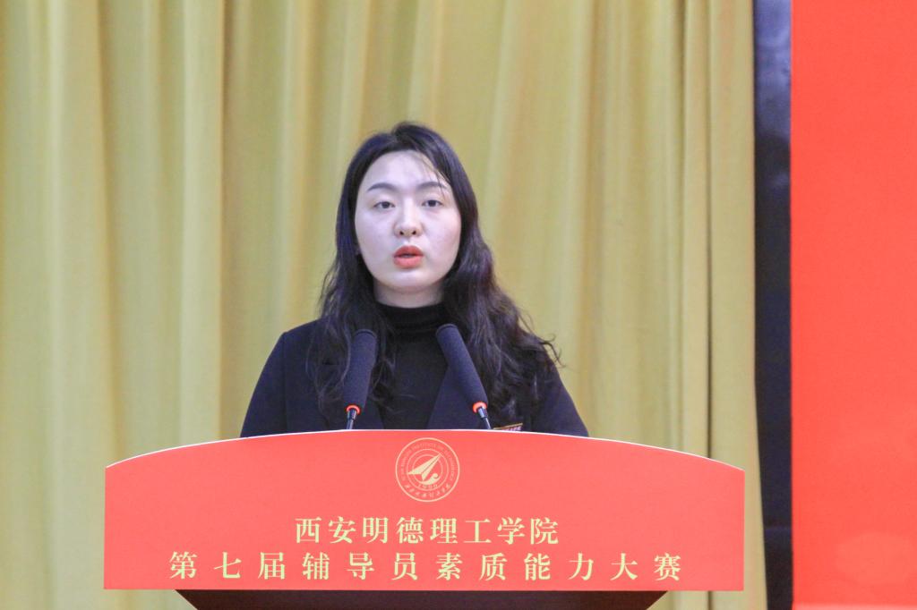 参赛选手代表高等职业技术学院辅导员窦旸作了表态发言。