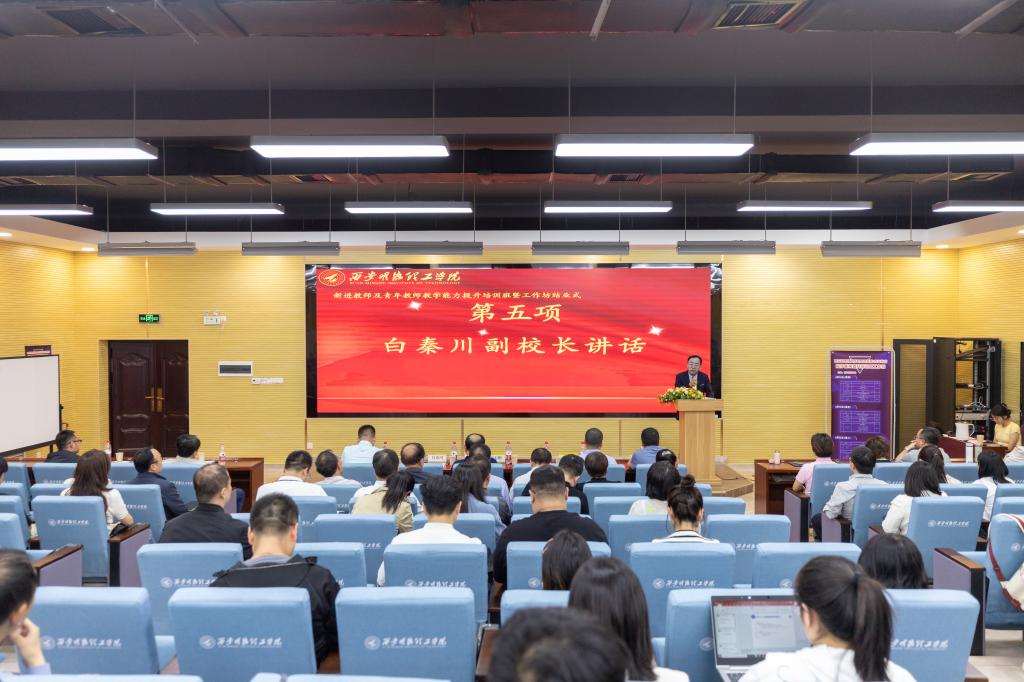 白秦川副校长代表学校讲话。他认为本期培训班暨工作坊具有三个特点:一是主题鲜明,名师云集。培训共邀请西安交通大学、陕西师范大学、西北大学、西安理工大学、西安工业大学等8位教学名师从不同的角度,为青年教师站好讲台传授经验,助力青年教师成长。二是内容丰富,针对性强。本着“干什么、就学什么”和“缺什么、补什么”的原则,精心设计课程,每场专题报告都具有很强的思想性、理论性、前瞻性和可操作性,对青年教师教学能力的提升具有很强的现实意义。三是学风端正,成效显著。本次培训班暨工作坊强化考勤制度,严明工作纪律。教师们能够珍惜这次难得的学习机会,以最快的速度调整好心态,坐得住,听得进,记得牢,讨论深,提高了学习的实效性,真正做到了学有所思、学有所悟、学有所获。