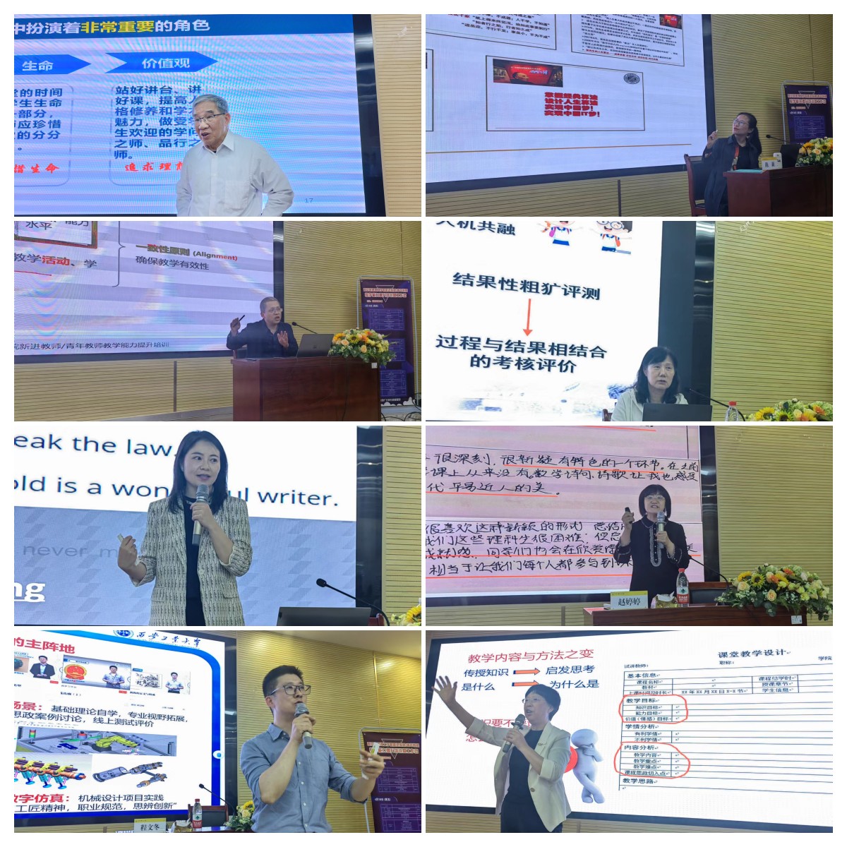 据悉,本次培训班暨工作坊由学校教师发展中心同全国高校教师网络培训中心陕西服务中心联合举办,共邀请了西安交通大学、陕西师范大学等众多高校12名专家,采用名师报告,专家讲座,教学示范,试讲点评、座谈讨论等环节对教师进行辅导培训,300余名新进教师及青年教师参加了培训。培训班从教师角色定位到如何视讲台为天职站好讲台,再到如何运用信息技术进行混合式教学设计,提升教学素养,如何建设课程思政等内容设置,通过老教授们言传身教,身体力行,用自己的人格魅力、渊博的学识、丰富的教学经验去感染每一位教师,从思想上再一次点燃了教师们从教的信心,给予教师们无穷的榜样力量。培训后期设置现场试讲点评及座谈讨论环节,通过专家精准点评和答疑解惑,再次为青年教师站稳讲台把脉诊断开出良方。培训班理论与实践结合,有极强的针对性和务实性,达到了培训的目的。