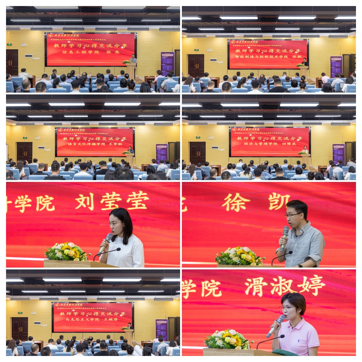 结业式伊始,来自不同学院的8位教师代表,从不同角度分享了培训的所感所获。点评专家葛文杰教授及蔡建峰教授分别对各试讲小组进行总结发言。他们希望青年教师要树立系统化思维,将应用型人才培养同产业链相结合,不断学习提高,加强师德修养,加强基本功训练,提升科研能力,尽快成长。随后,校领导为参加培训的新教师代表颁发了结业证书。