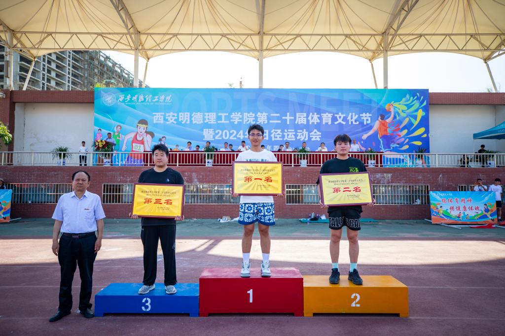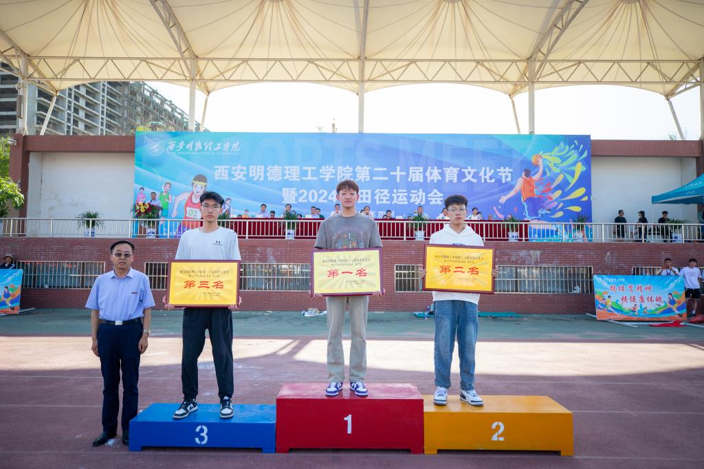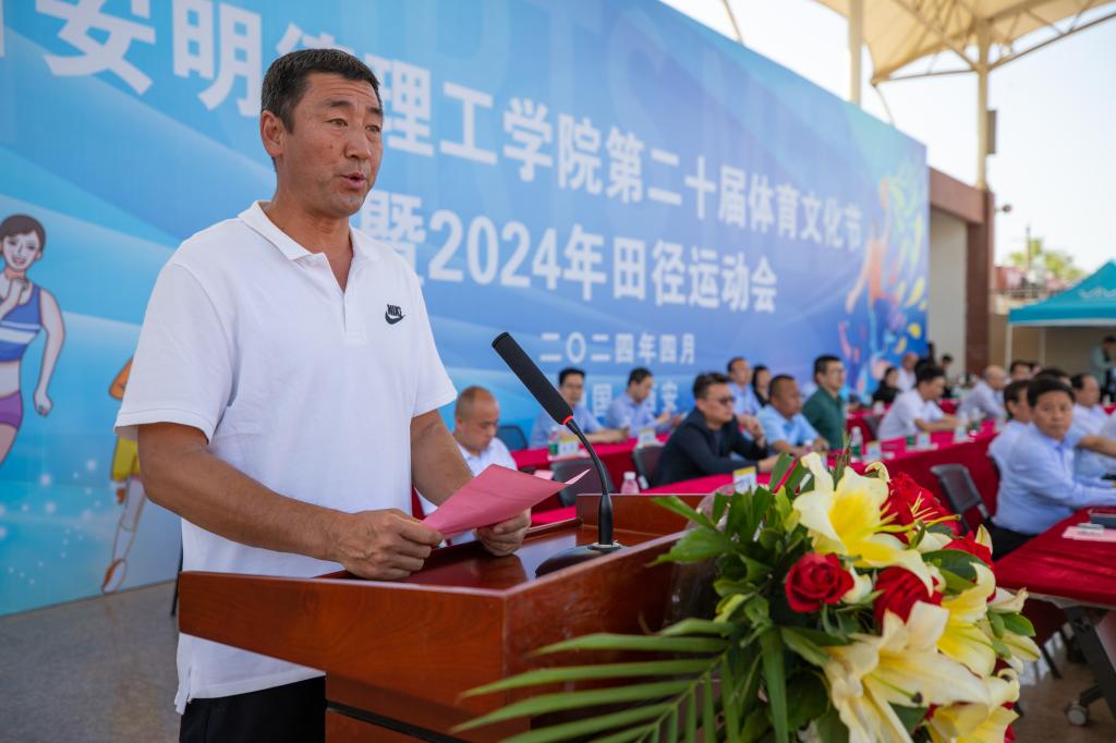 2024年4月25日下午4时,校长王志刚,副校长白秦川、刘星、朱延波、陈鹏、王斌宁,财务总监马晓军,各职能部门、各二级学院负责人观看了本届田径运动会最后一个比赛项目男女4×400米接力的比赛。赛后,beat365vip官网登录入口第二十届体育文化节田径运动会闭幕式正式开始,各代表队整齐有序的步入田径场,闭幕式由副校长朱延波主持。