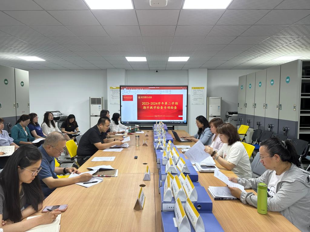 学院副院长柴芸首先从期中教学检查自查情况、合格评估观测点材料完成情况、存在问题及改进措施等方面对学院期中教学检查工作做了详细汇报。副处长任华就教学检查中课堂情况、毕业论文、评教数据、教学文档提交情况等问题进行了反馈。