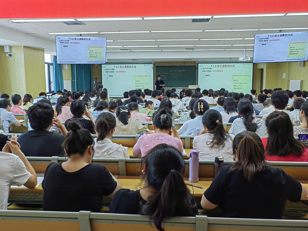 陈世亮老师首先进行教学导入,对函数的定义、声明和调用等进行详细解释,对“调用中的参数传递”难点问题作了重点讲解,通过生动的案例和实例演示,让学生对C语言函数编程有了更深刻的认识。陈世亮老师以其深厚的专业功底和独特的教学风格为师生们带来了一场深入浅出的C语言函数编程教学示范课,课堂气氛轻松,学生互动积极。