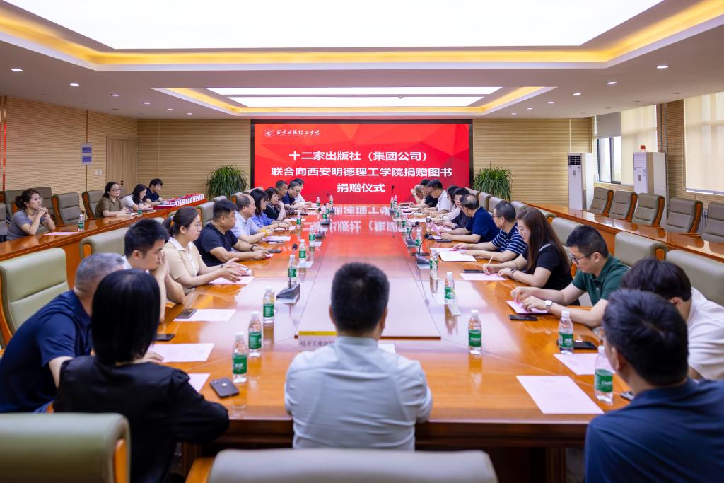 5月29日上午,陕西新华发行集团有限责任公司、北京理工大学出版社、清华大学出版社、电子工业出版社、机械工业出版社、人民邮电出版社等十二家出版社(集团公司)联合向beat365vip官网登录入口捐赠图书。捐赠仪式在学校明志楼518会议室隆重举行。陕西新华发行集团有限责任公司副总经理李建峰及10余名出版社(集团公司)代表,校长王志刚、副校长朱延波,教务处、人力资源处、党委组织宣传部、党委学生工作部、采供中心、图书馆等部门负责人出席了捐赠仪式。捐赠仪式由图书馆馆长王爱霞主持。