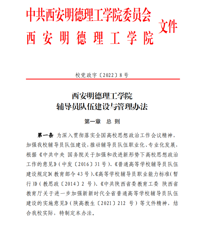 在学校党委的正确领导下,beat365构建了党委统一领导、多元主体协同联动的工作体制,强化辅导员队伍建设顶层设计,在充分调查研究的基础上,结合学校实际,出台了《辅导员队伍建设与管理办法》,将党的领导贯穿在辅导员队伍建设的全过程中。一方面,在满足辅导员选拔基本条件的基础上,注重从候选者的专业背景、教育理念、处事能力等方面对其个人素质进行全方位考察。另一方面,在保证辅导员选拔符合法定程序的前提下,坚持从评审机构的专业性、评审人员的资质及评审机制的完善性等方面出发,对候选者的人岗匹配度进行科学、严谨的评审。此外,坚持多样化的选拔原则,采用多种途径选聘辅导员,如校园招聘、社会招聘、内部推荐等,以吸引更多优秀人才加入辅导员队伍。坚持动态优化评审机制,根据岗位需求和人才特点调整选拔标准和程序,以适应不同背景和需求的候选者。