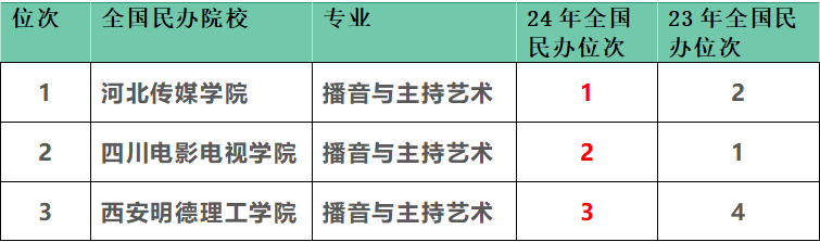 图为软科中国大学播音与主持艺术专业民办全国前3位排名