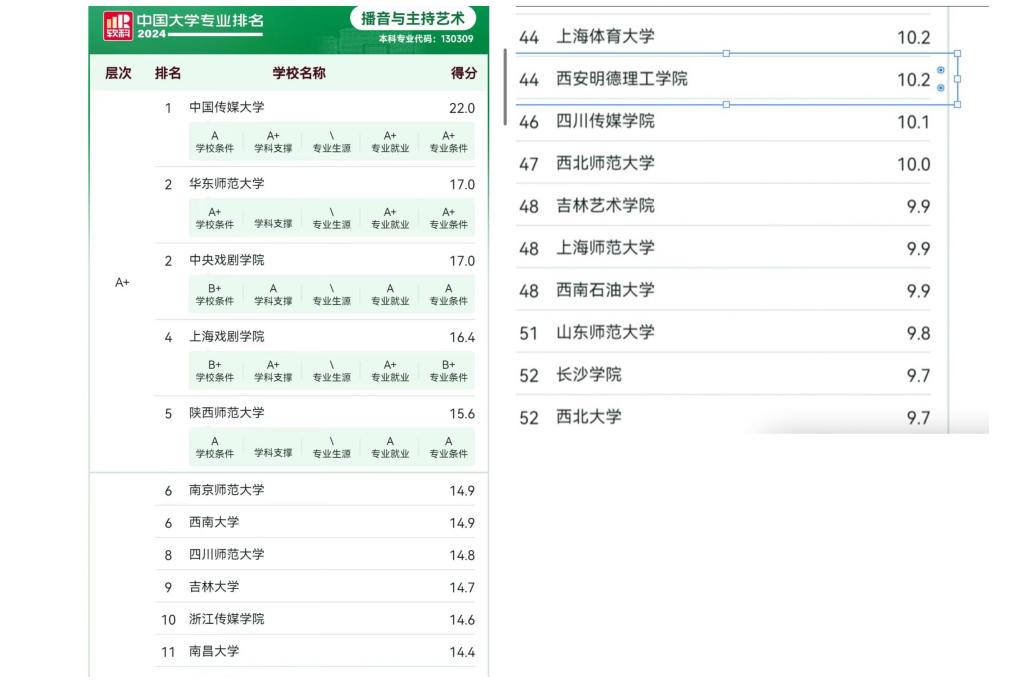 图为陕西本科院校播音与主持艺术专业排名(图片来源:播音速递)