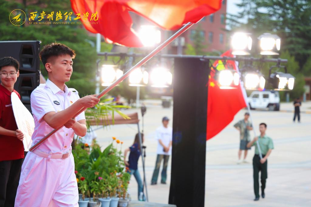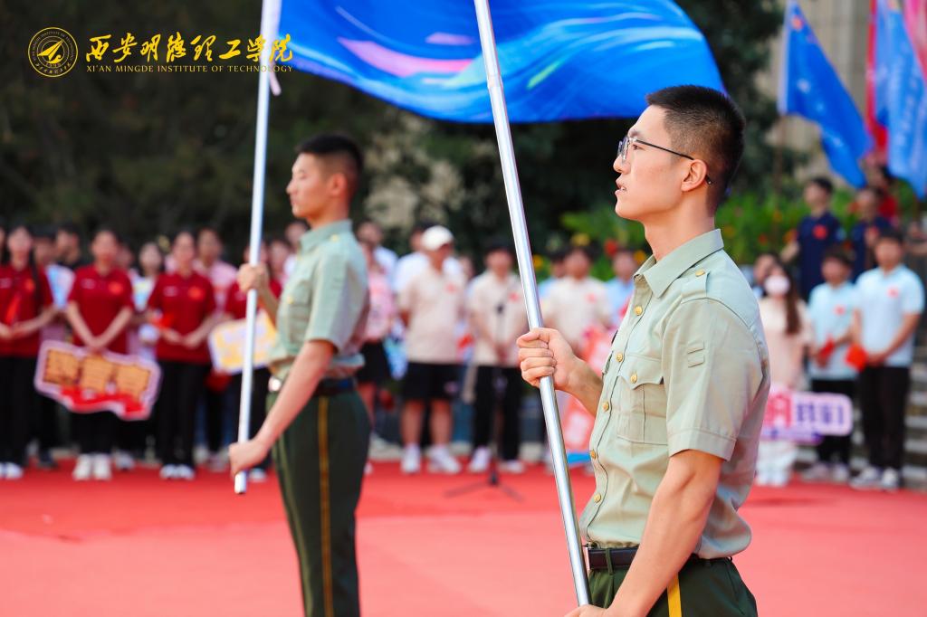 迎国旗、奏唱国歌的庄严仪式令人心潮澎湃。国旗护卫队迈着整齐有力的步伐护送鲜艳的五星红旗入场。全场肃静,现场观众庄严肃立,面向国旗行注目礼,共同唱响国歌,歌声嘹亮,饱含着对伟大祖国的深情热爱和崇高敬意。