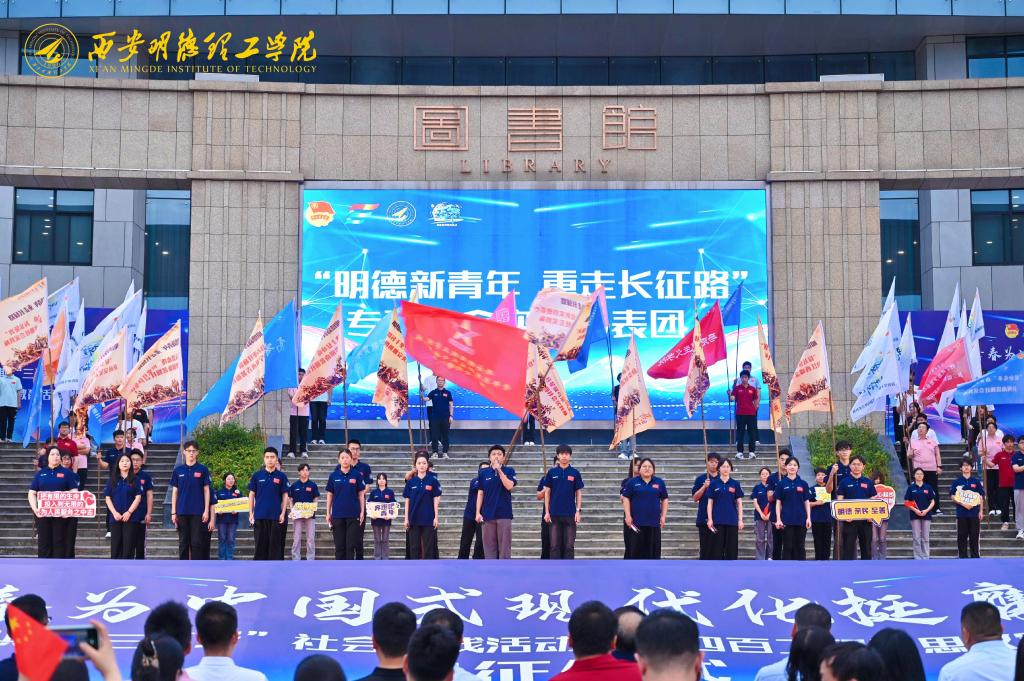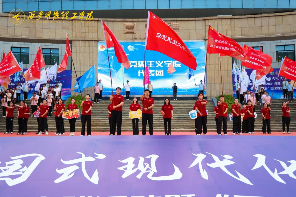 6月27日,学校在中心广场隆重举行2024年暑期“三下乡”社会实践活动暨“四百工程”思政实践教育活动出征仪式。学校校长王志刚,副校长白秦川、朱延波、刘星、陈鹏、王斌宁,各单位负责人,全体社会实践指导教师及2000余名学生志愿者参加出征仪式。