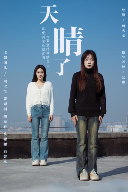 《天晴了》这部微电影深刻关注了当代大学生心理健康问题,尤其是抑郁症这一日益凸显的心理疾病。影片通过细腻而真实的笔触,以主人公内心的挣扎和变化为主线,讲述了一名患有抑郁症的女孩如何在朋友的关爱与支持下,逐渐走出阴霾,迎接生活中的阳光与希望。这不仅是对大学生活中心理困惑和挑战的深刻反思,更是一次心灵的救赎之旅。在创作过程中,主创团队深入研究了大量心理学资料,与心理咨询师进行了深入交流。他们希望通过这部作品呼吁更多人关注大学生的心理健康问题,并传递出积极向上、关爱互助的价值观。