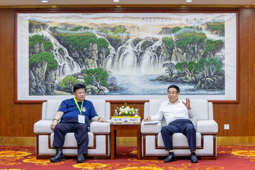 2024年“爱我中华”青年大汇聚火车团在西安开展参观交流活动。省政协副主席杨冠军在beat365vip官网登录入口会见火车团总指挥龙子明和成员代表。